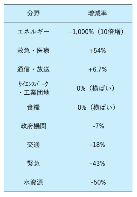 2024年と比較した分野別の攻撃増減を見ると、最も顕著なのはエネルギー分野で、前年比1,000%(10倍)という異常な増加を記録した。次いで緊急救援・医療分野が54%増、通信・放送分野が6.7%増となっている。一方で、政府機関は7%減、交通は18%減、金融は43%減、水資源は50%減と、一部分野では減少も見られた。