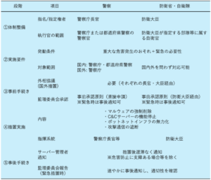警察と自衛隊の権限や実施内容を整理した(各種資料から編集部作成)