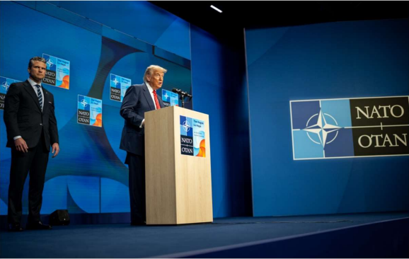 トランプ大統領は、NATO同盟国から歴史的な防衛支出のコミットメントを確保した後、NATOハーグサミットで演説する。